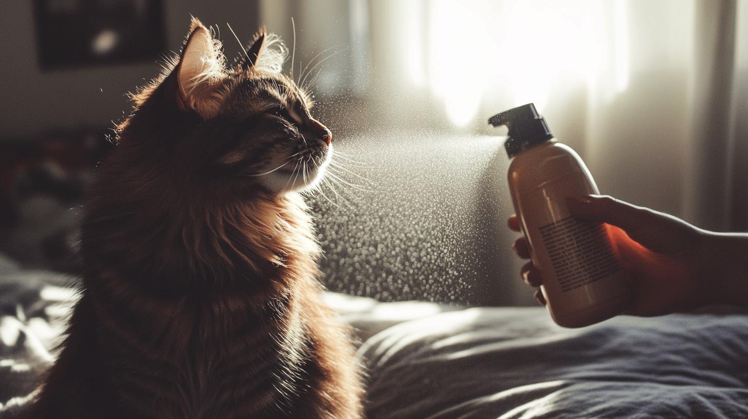 Citrus-scented sprays are often effective as cats typically dislike the smell. Spritz a small amount on the bed or use double-sided tape at the edges to make the surface less appealing. These methods can discourage your cat from jumping onto the bed, reducing the likelihood of future accidents.