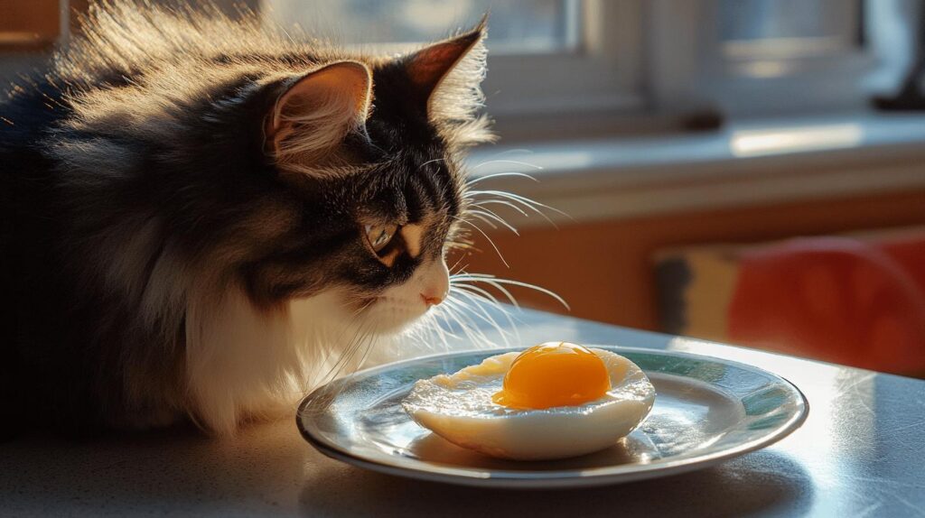 While cooked eggs are generally safe, there are some potential risks to keep in mind. Cats, like humans, can have food allergies, and eggs are no exception. Signs of an allergic reaction might include vomiting, diarrhea, or skin irritations. If any of these symptoms occur, it’s wise to consult a veterinarian immediately. Additionally, eggs should only be a small part of a cat’s diet. Overfeeding can lead to weight gain and other health issues. Veterinarian advice can help determine the right amount and frequency of egg treats, especially if your cat has existing health conditions.