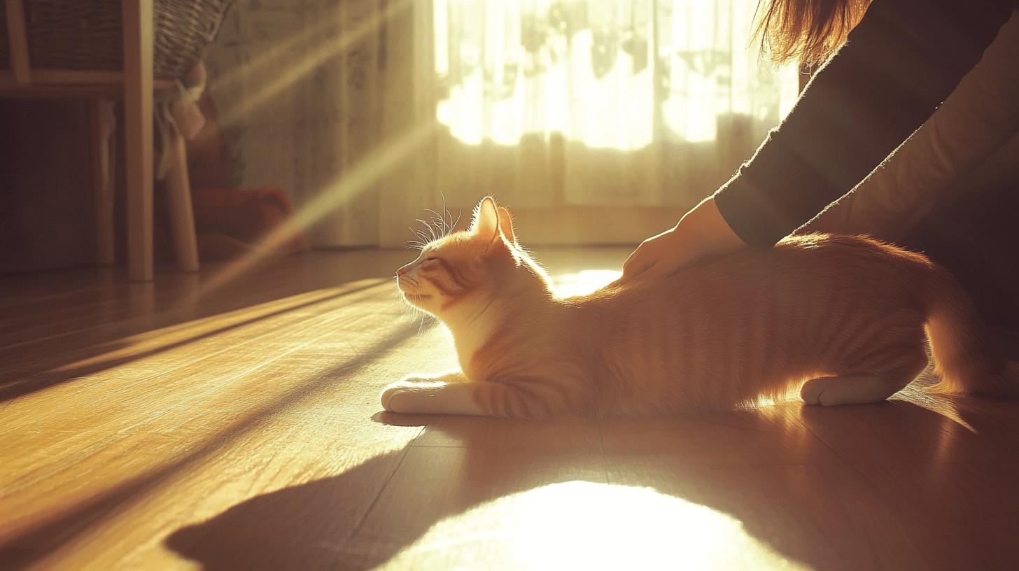 When a cat stretches as you pet her, the action indicates enjoyment and trust. Stretching releases tension and signals a relaxed state, showing your cat feels secure and content with the interaction.
