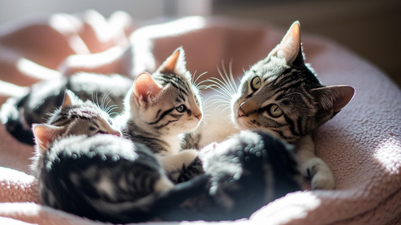 But don’t worry – a quiet hideaway (like a sturdy cardboard box in a calm corner) and gentle check-ins can help her feel confident. Oops, let me rephrase that… she’ll start purring with mom-mode pride! Ever seen her whiskers dance as she curls around her babies?