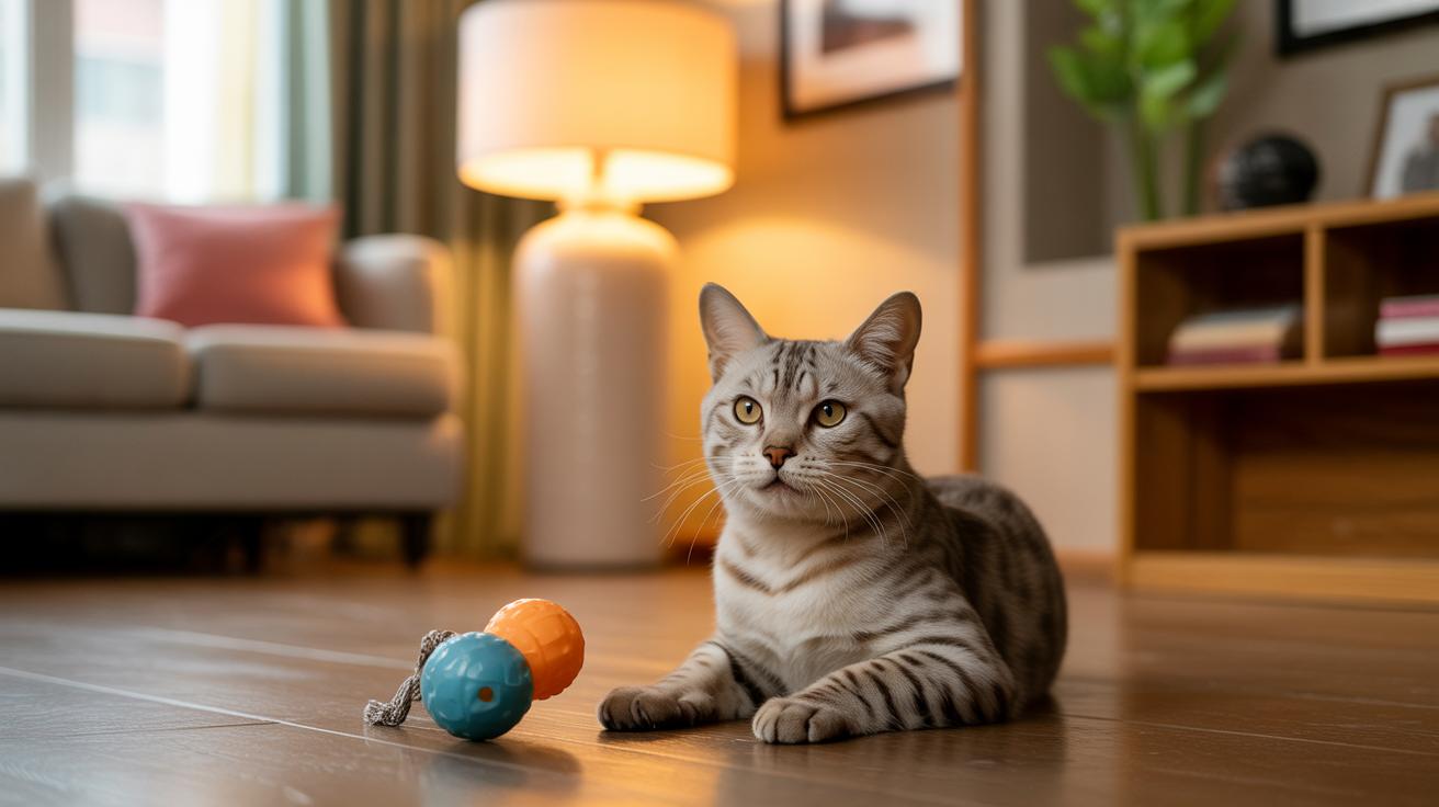 Bring out an interactive wand (a stick with string or feathers), a puzzle feeder (treat-dispensing toy), and a sturdy plush prey (a soft stuffed toy built to take pounces). The flutter of feathers, the rattle of kibble, the satisfying thud of a plush, that’s the good stuff.